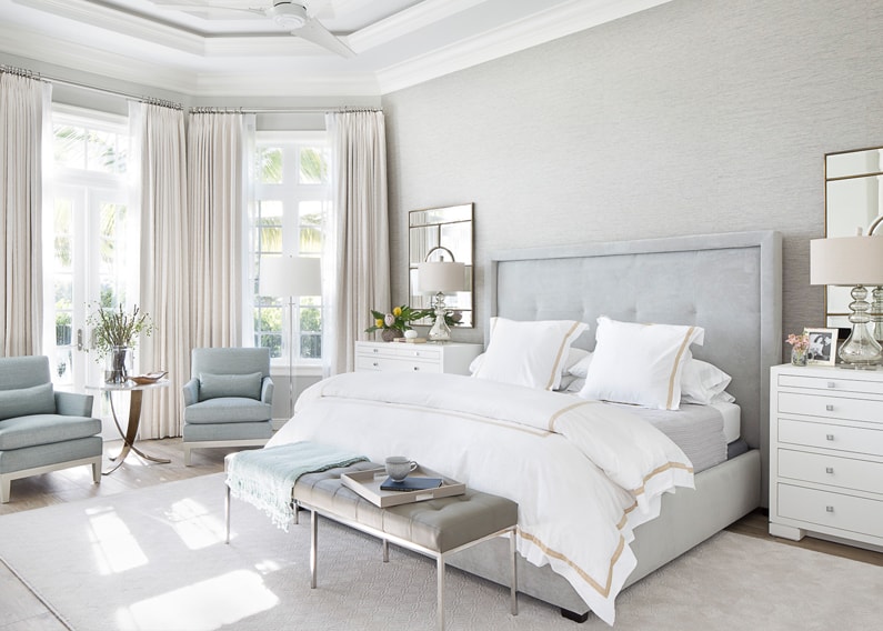 دع اللون يلهمك – لجعل مساحة الغرفة تبدو أكبر والسقف يبدو أعلى، اختر ورق حائط بألوان باردة في الخلفية، مثل اللون الأخضر، الأزرق، أو البنفسجي. الألوان الباردة الناعمة تعكس الطمأنينة بينما توحي الألوان الباردة المكثفة بالانتعاش.