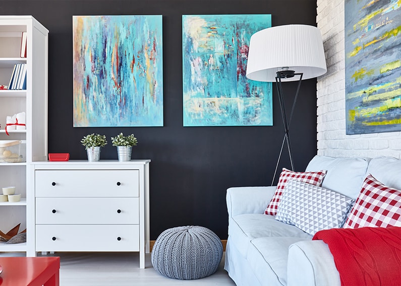 لا تنسى الألوان – أهم مرحلة في اختيار اللوحة الفنية المناسبة لك هي مرحلة اختيار الألوان. احرص على اختيار لوحات جدارية بألوان متناسقة مع بقية أثاث الغرفة وبنفس نسبة تواجد اللون في الغرفة. بمعنى، لو كان لديك في غرفة المعيشة مثلا كنب كبير باللون الرمادي وخداديات باللون الوردي، احرص على اختيار لوحة بنسبة لون وردي متناسقة.