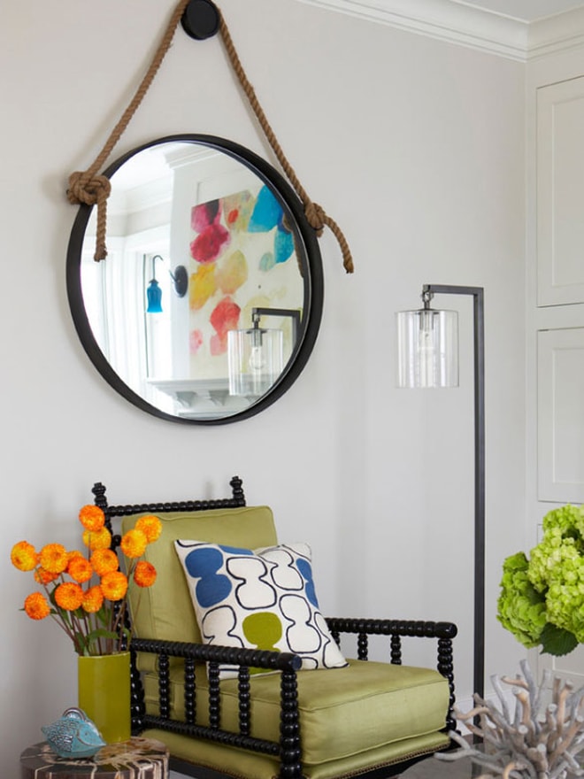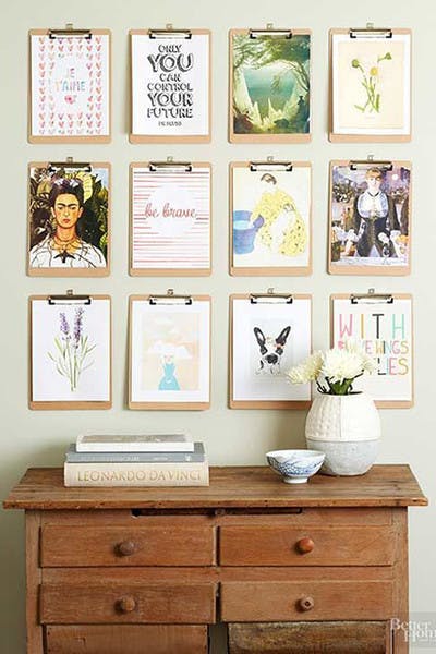 تعليق قطع متنوعة – بجانب المرايا، هذه بعض الأفكار البسيطة لقطع يمكنك تعليقها: