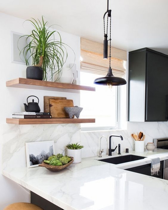 أيضا، يمكنك استخدام الأرفف بشكل عملي أكثر في المطبخ بترتيب الأواني على الرفوف.