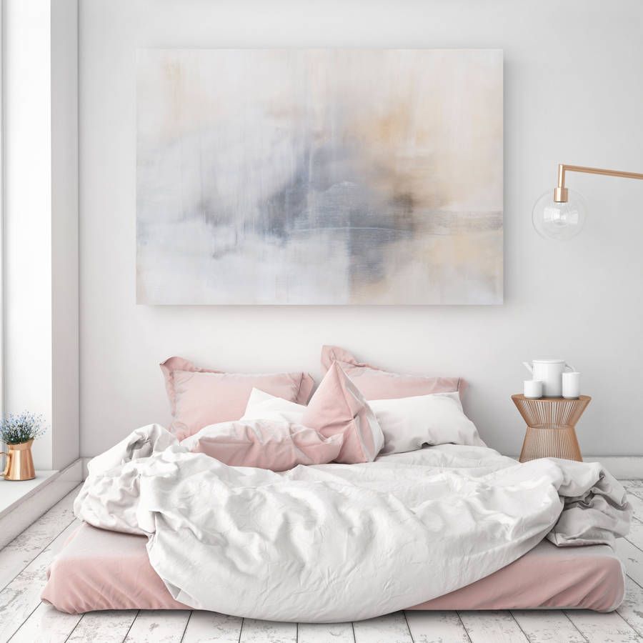 غرفة النوم استحدثت للإسترخاء والهدوء و اللوحة الفنية يجب أن تعكس ذلك. أفضل مكان لتعليق اللوحات الفنية في غرف النوم يكون إما فوق السرير مباشرة أو على الجدار المقابل للسرير. ابحث عن لوحات فنية تجريدية هادئة وبألوان دافئة بدون إطار أو بإطار نحيف جدا.