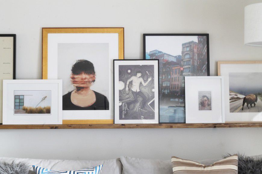 سواء كنت تعمل من المنزل أو في مكتب، اللوحات الفنية سوف تساعدك في خلق بيئة محفزة وملهمة للعمل. سوف تحتاج إلى رف معلق مثبت قريبا من مكتبك. اختر فنون ملهمة وابدأ بصور أو أعمال فنية لأشخاص تستمد الكثير من الإلهام منهم.